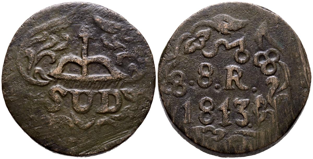FERDINAND VII (1808-1833). 8 Reales. (Ae. 26.62g/35mm). 1813. Morelos. (Cal-2019-1343). With decorations. Insurgent coinage. Almost Very Fine.