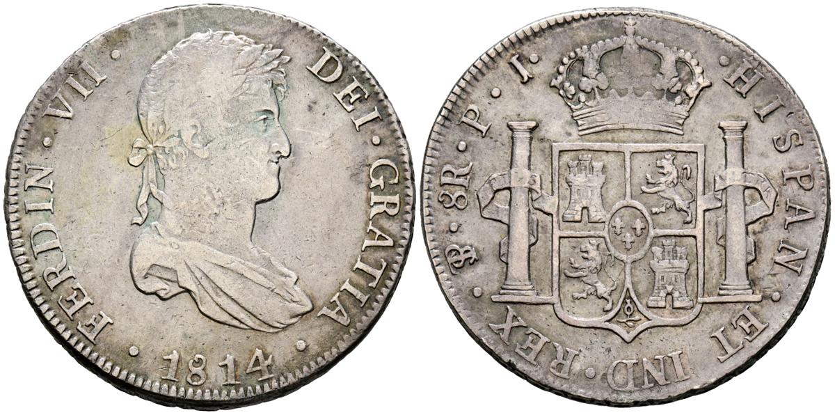 FERDINAND VII (1808-1833). 8 Reales. (Ar. 26.96g/40mm). 1814. Potosí PJ. (Cal-2019-1378). Almost Very Fine/ Very Fine.