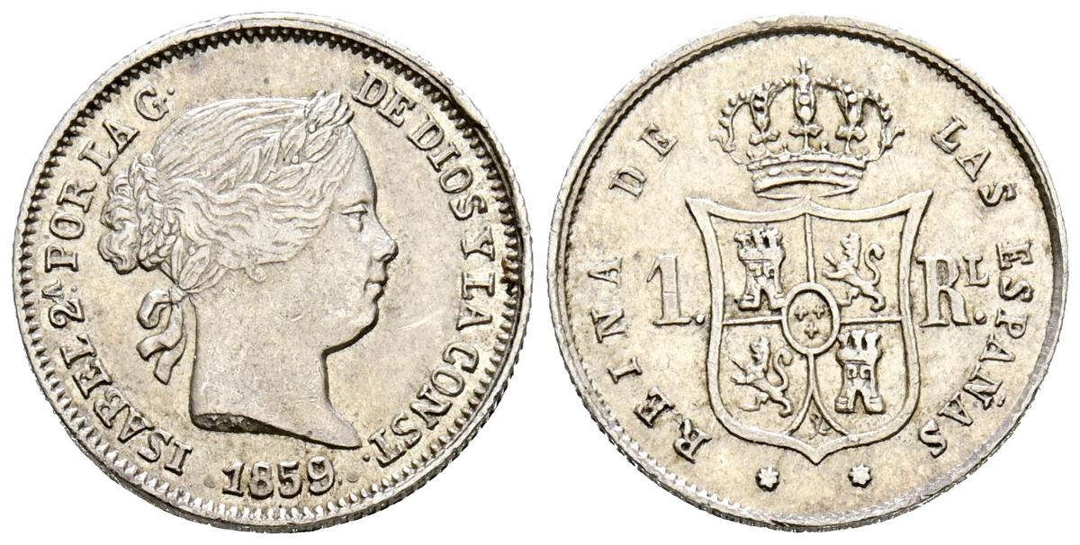 ELIZABETH II (1833-1868). 1 Real. (Ar. 1.31g/15mm). 1859. Sevilla. (Cal-2019-329). Extremely Fine. Limited.