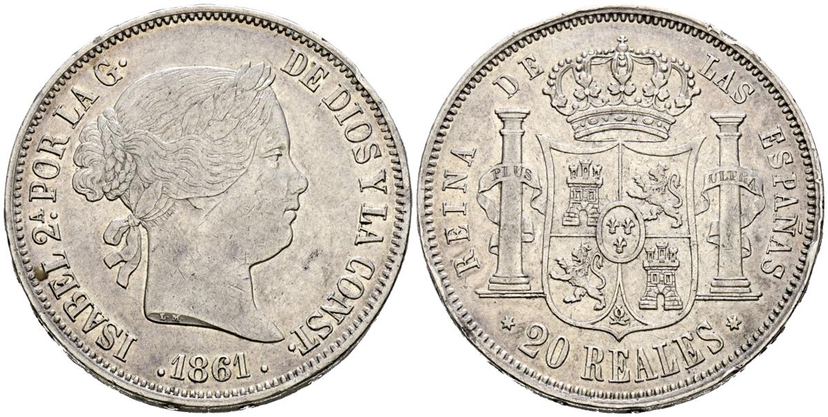 English ELIZABETH II (1833-1868). 20 Reales (Ar. 25.89g/37mm). 1861. Madrid. (Cal-2019-619). Good Very Fine.