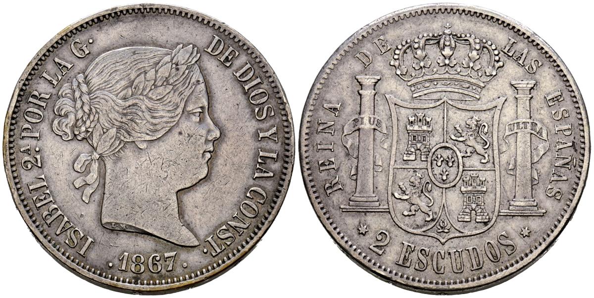 English ELIZABETH II (1833-1868). 2 Escudos. (Ar. 25.91g/37mm). 1867. Madrid. (Cal-2019-647). Good Very Fine.