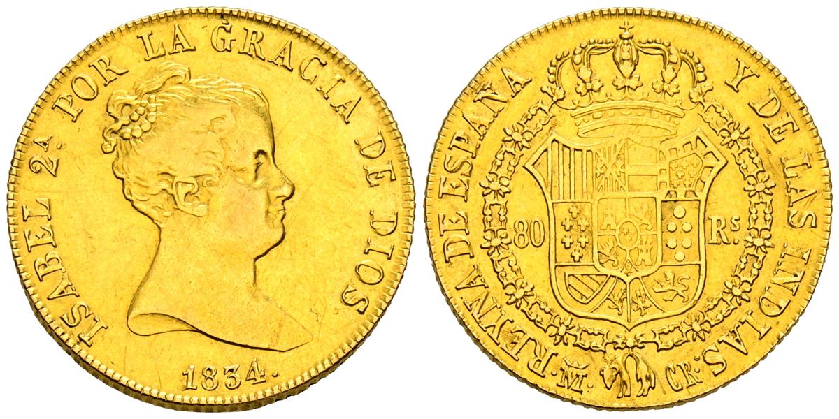 ELIZABETH II (1833-1868). 80 Reales. (AU 6.77g/21mm). 1834. Madrid CR. (Cal-2019-719). Very Fine. Limited.