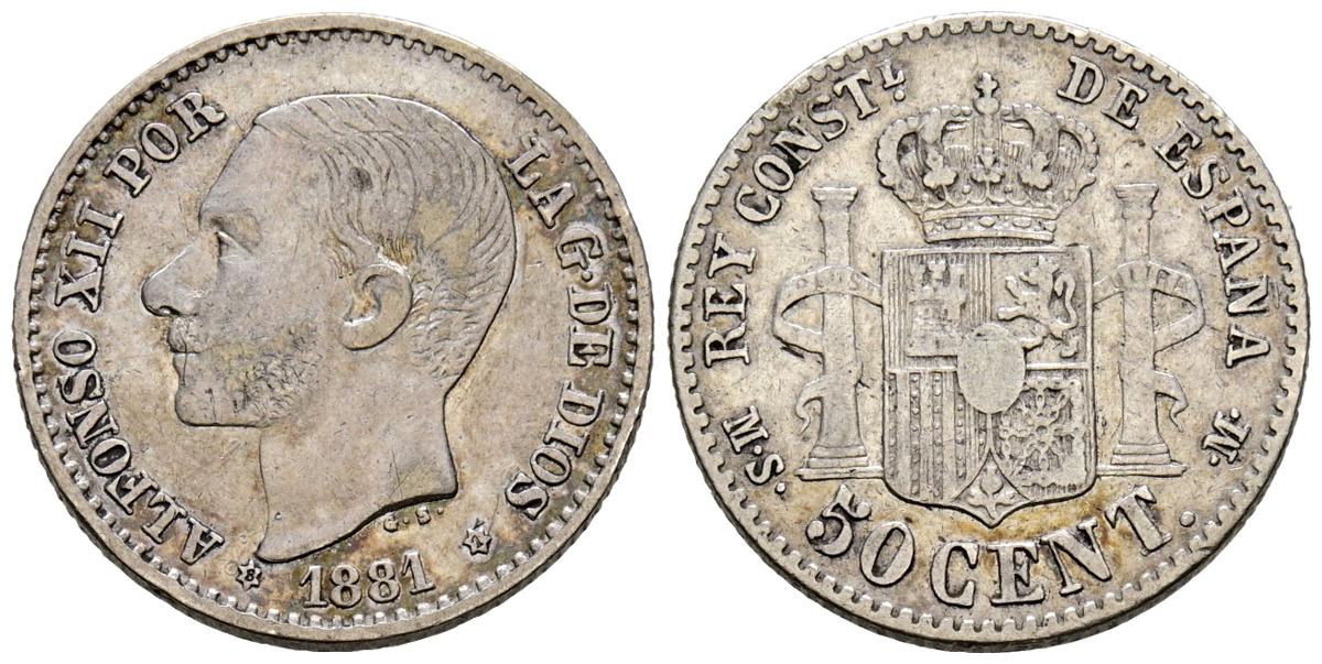 ALFONSO XII (1874-1885). 50 Cents. (Ar. 2.54g/18mm). 1881. *8-1. Madrid MSM. (Cal-2019-12). Good Very Fine.