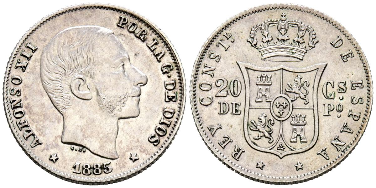 ALFONSO XII (1874-1885). 20 cents. (Ar. 5.19g/23mm). 1885. Manila. (Cal-2019-111). Good Very Fine.