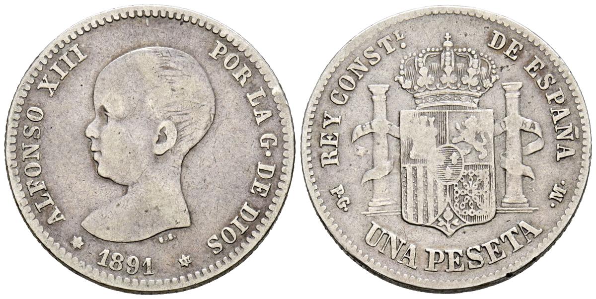 ALFONSO XIII (1885-1931). 1 Peseta. (Ar. 4.84g/23mm). 1891 *18-91. Madrid PGM. (Cal-2019-53). Good Fine.