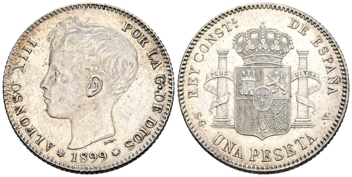 ALFONSO XIII (1885-1931). 1 Peseta. (Ar. 4.88g/23mm). 1899 *18-99. Madrid SGV. (Cal-2019-57). Extremely Fine. Very few cleaning scratch .