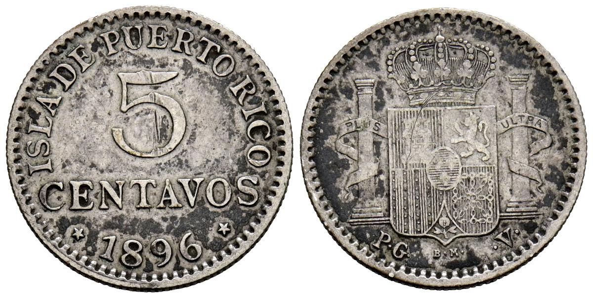 ALFONSO XIII (1885-1931). 5 cents. (Ar. 1.29g/ 16mm). 1896. Puerto Rico. PGV (Cal-2019-124). Almost Very Fine.