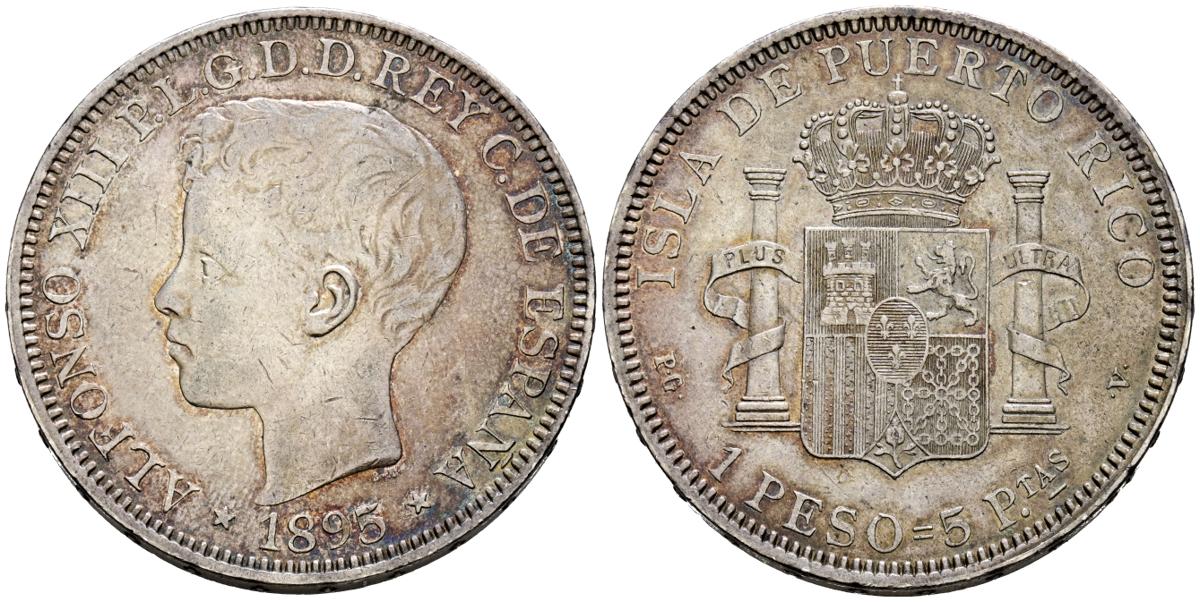 ALFONSO XIII (1885-1931). 1 Weight. (Ar. 24.95g/38mm). 1895. Puerto Rico PGV. (Cal-2019-128). Good Very Fine. Beautiful patina.