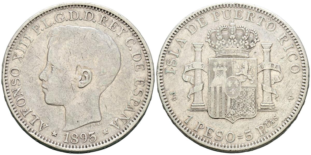 ALFONSO XIII (1885-1931). 1 Weight. (Ar. 24.62g/37mm). 1895. Puerto Rico PGV. (Cal-2019-128). Almost Very Fine. Limited.