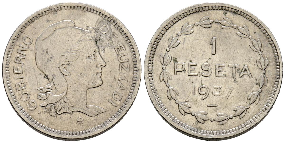 CIVIL WAR, Euzkadi. 2 Pesetas. (Ni. 4.11g/22mm). 1937. (Cal-14). Very Fine.