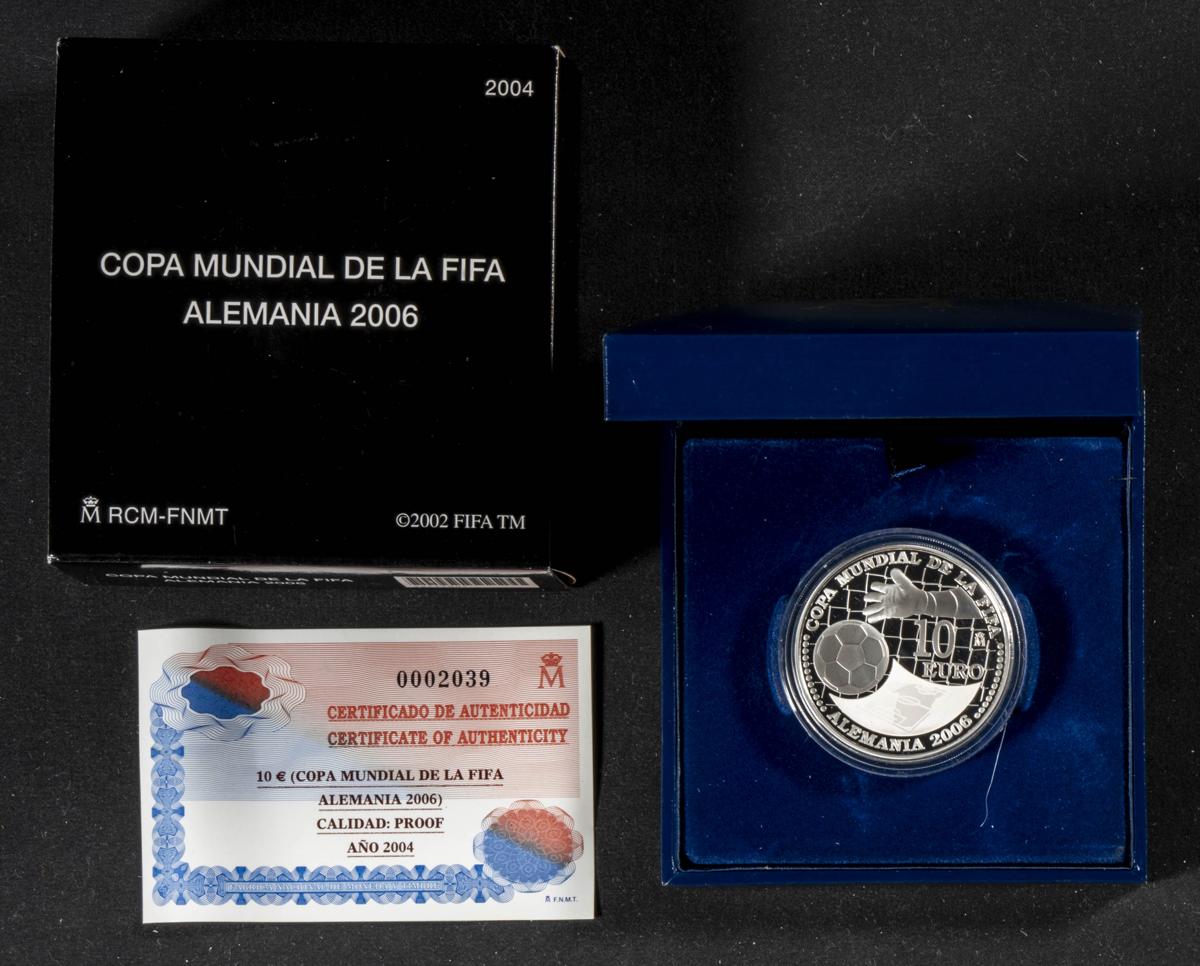 JUAN CARLOS I (1975-2014). 10 Euros (Ar. 27.00g/40mm). FIFA World Cup. Germany 2006. 2004. FNMT PROOF. Includes original case and certificate of authenticity. Print run of 50,000 units.