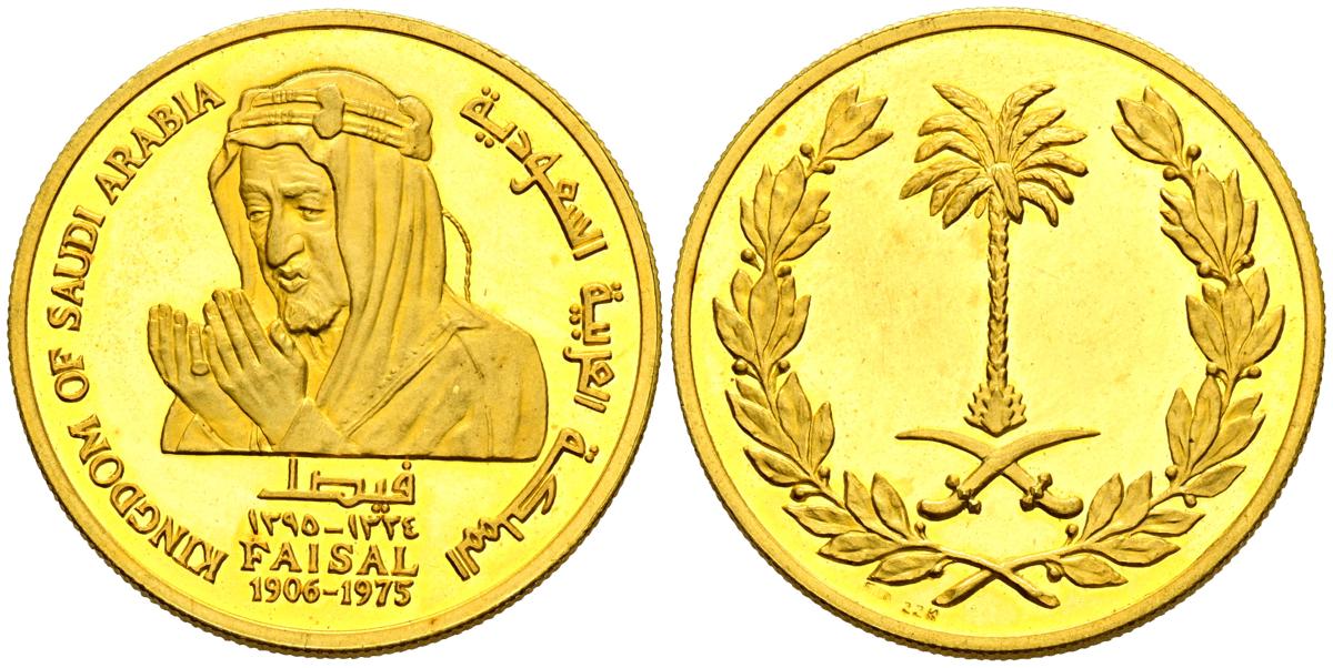 SAUDI ARABIA. Medal. (Au. 16.11g/30mm). 1975. Commemorative medal of Faisal I (1964-1975). PROOF.