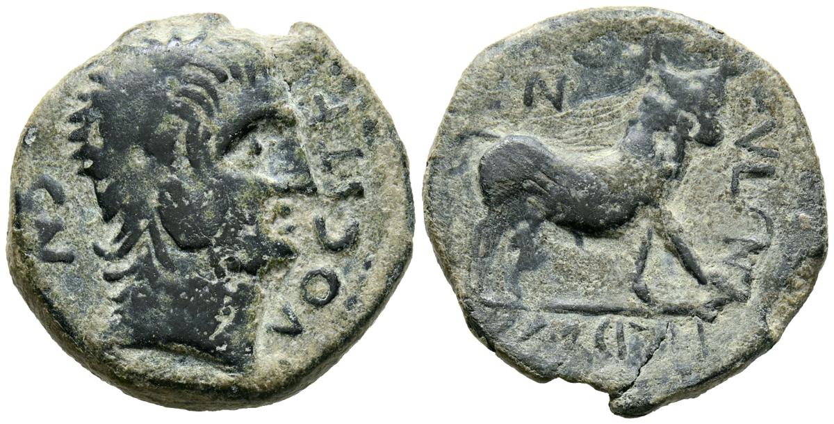 CASTULO (Cazlona, Jaén). Semis. (Ae. 7.39g/23mm). (FAB-728). Anv: Diademed male head on the right, around legend: CN VOC STFR. Rev: Bull to the right, above: CN crescent, in front: CN FVL CN F, below Iberian legend: CaSTeLe. Very Fine.