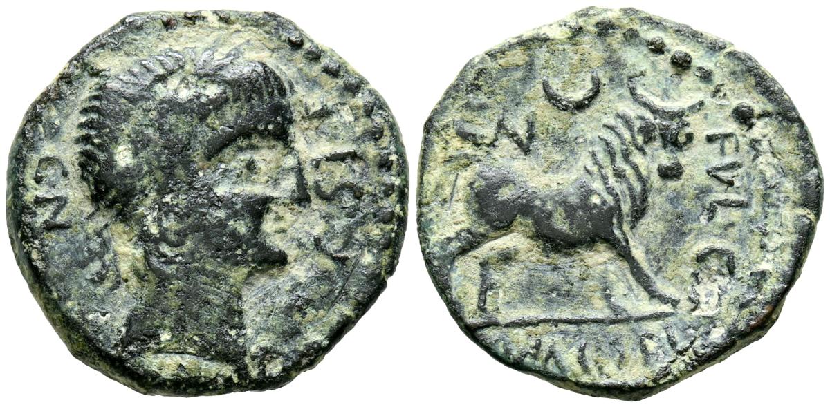 CASTULO (Cazlona, Jaén). Semis. (Ae. 6.54g/23mm). (FAB-728). Anv: Diademed male head on the right, around legend: CN VOC STFR. Rev: Bull to the right, above: CN crescent, in front: CN FVL CN F, below Iberian legend: CaSTeLe. Almost Very Fine.