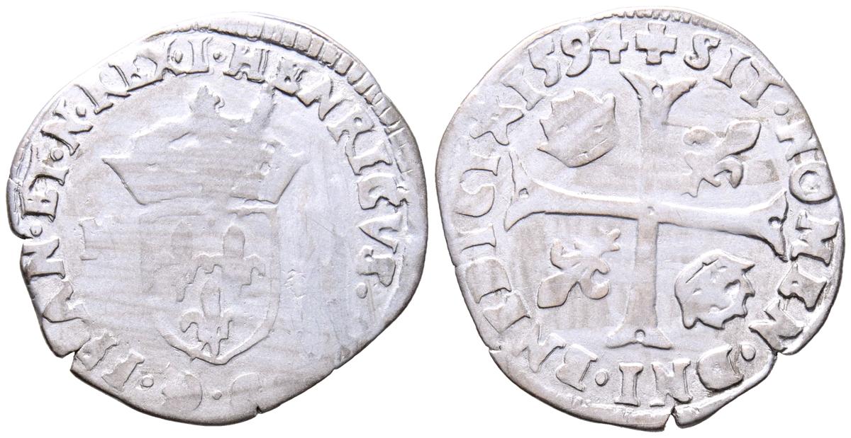 FRANCE, Henry IV (1589-1610). Douzain. (Ve. 2.21g/24mm). 1594. Cleremont-Ferrand. (Duplessy 1247). Very Fine.