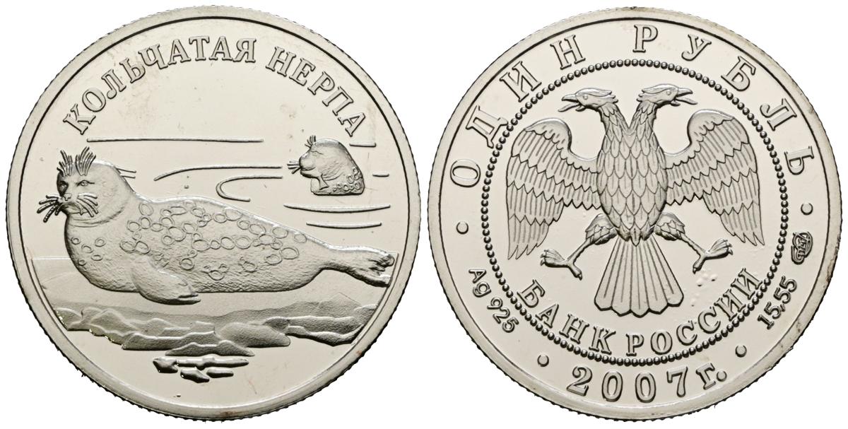 English RUSSIA. 1 Ruble. (Ar. 13.96g/33mm). 2007. (Km#Y962). Eagle. PROOF.