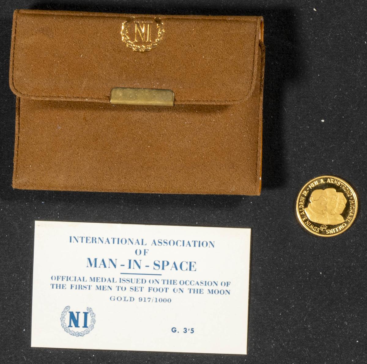 SPAIN. Apollo XI. Moon landing (Au. 3.51g/20mm). 1969. Man in Space series. Iberian Numismatics. Gold of 0.917 thousandths. PROOF. Includes official wallet and certificate of authenticity.