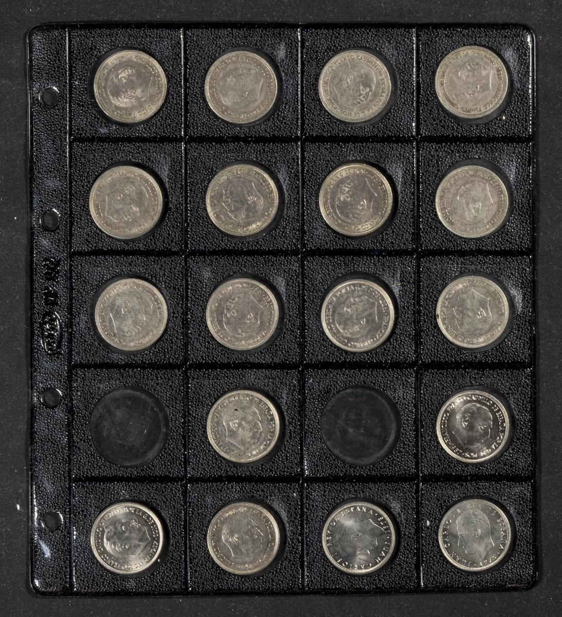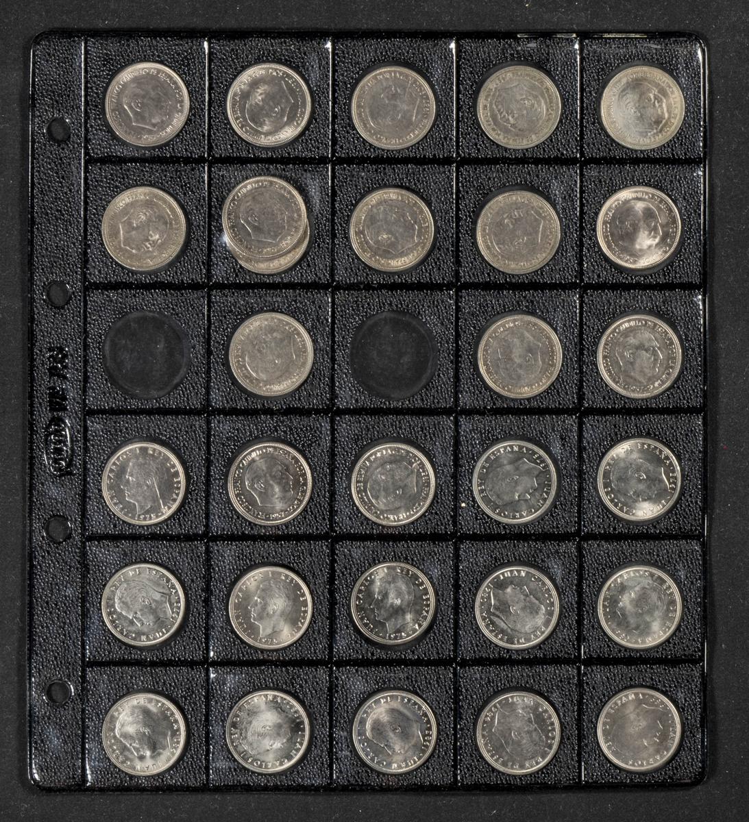 ESPAÑOL STATE AND JUAN CARLOS I. Extensive collection made up of hundreds of pieces and displayed in 5 albums with a great diversity of modules and dates. There are few pieces in the collection that are in good condition. Includes some coins from the Centennial of the Peseta and copies from the Second Republic and Civil War. Different states of conservation. IT IS ESSENTIAL TO EXAMINE.