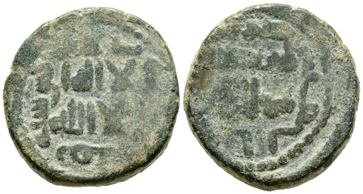 PERIOD OF Umayyad Governors, Anonymous. Felus. (Ae. 8.11g/22mm).108H. Al Andalus. (Frochoso XIX-b). Very Fine.
