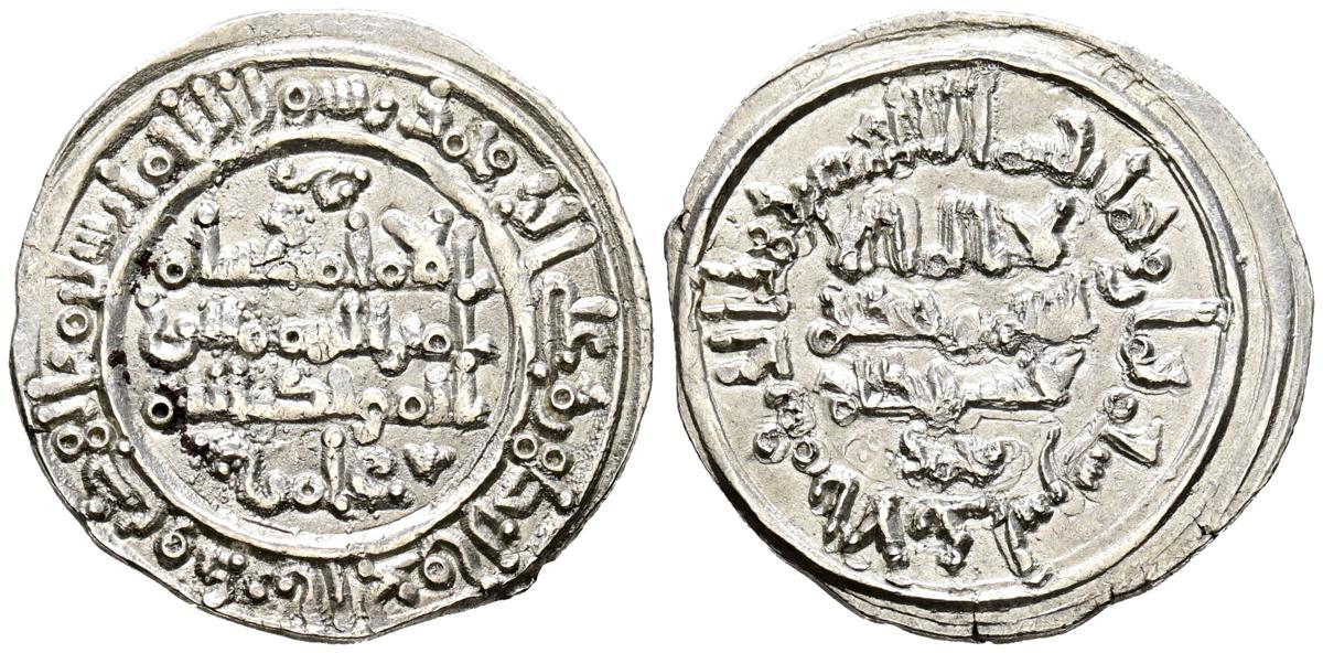 English CALIPHATE OF CÓRDOBA, Hisham II al-Muayyad. Dirham. (Ar. 3.75g/25mm). 388H. Al Andalus. (Vives 538; Fronchoso 388.8d). Citing Amir in IIA and Muhammad in IA. Extremely Fine.