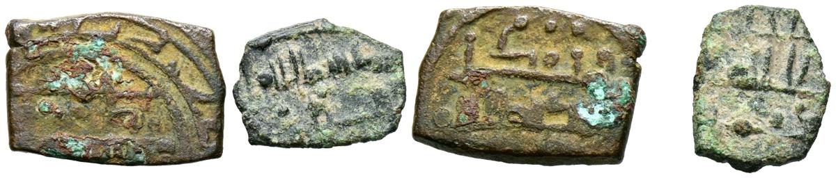 KINGDOMS OF TAIFAS. Aphtasies of Badajoz. Umar al-Mutawakkil Abu Hasfs. (455-487H). Pair of two fragments of Dirhams. Very Fine. TO EXAMINE.