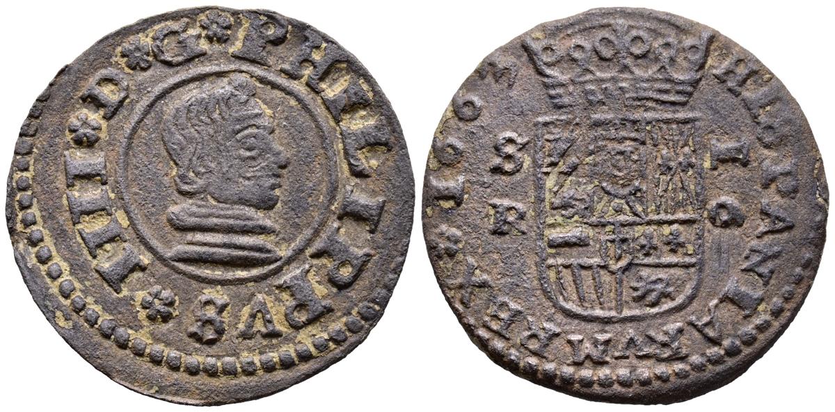 PHILIP IV (1621-1665). 16 Maravedís (Ae. 4.08g/25mm). 1663. Sevilla R. (Cal-2019-497). Very Fine.