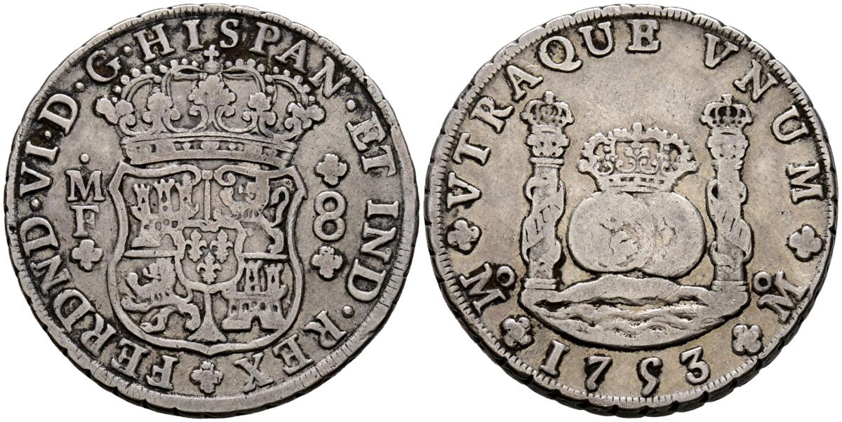 FERDINAND VI (1746-1759). 8 Reales (Ar. 26.68g/39mm). 1753. Mexico MF. (Cal-2019-479). Good Fine.