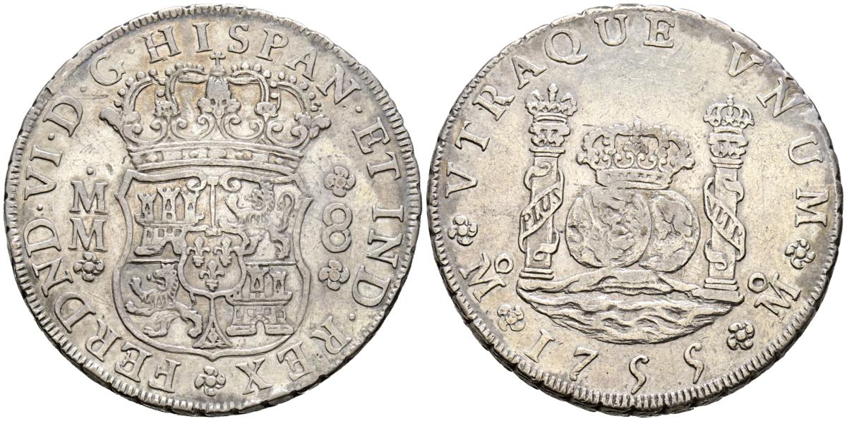 FERDINAND VI (1746-1759). 8 Reales (Ar. 26.86g/39mm). 1755. Mexico MM. (Cal-2019-489). Good Very Fine.
