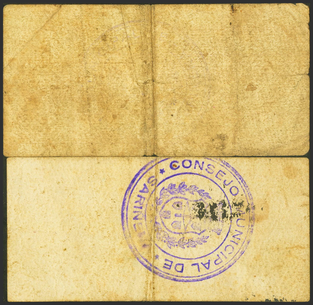 SARIÑENA (HUESCA). 50 Cents and 1 Peseta. June 10, 1937. (González: 4785/86). Rare complete series. Almost Very Fine.