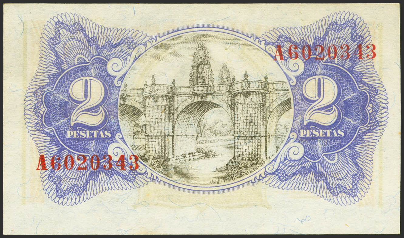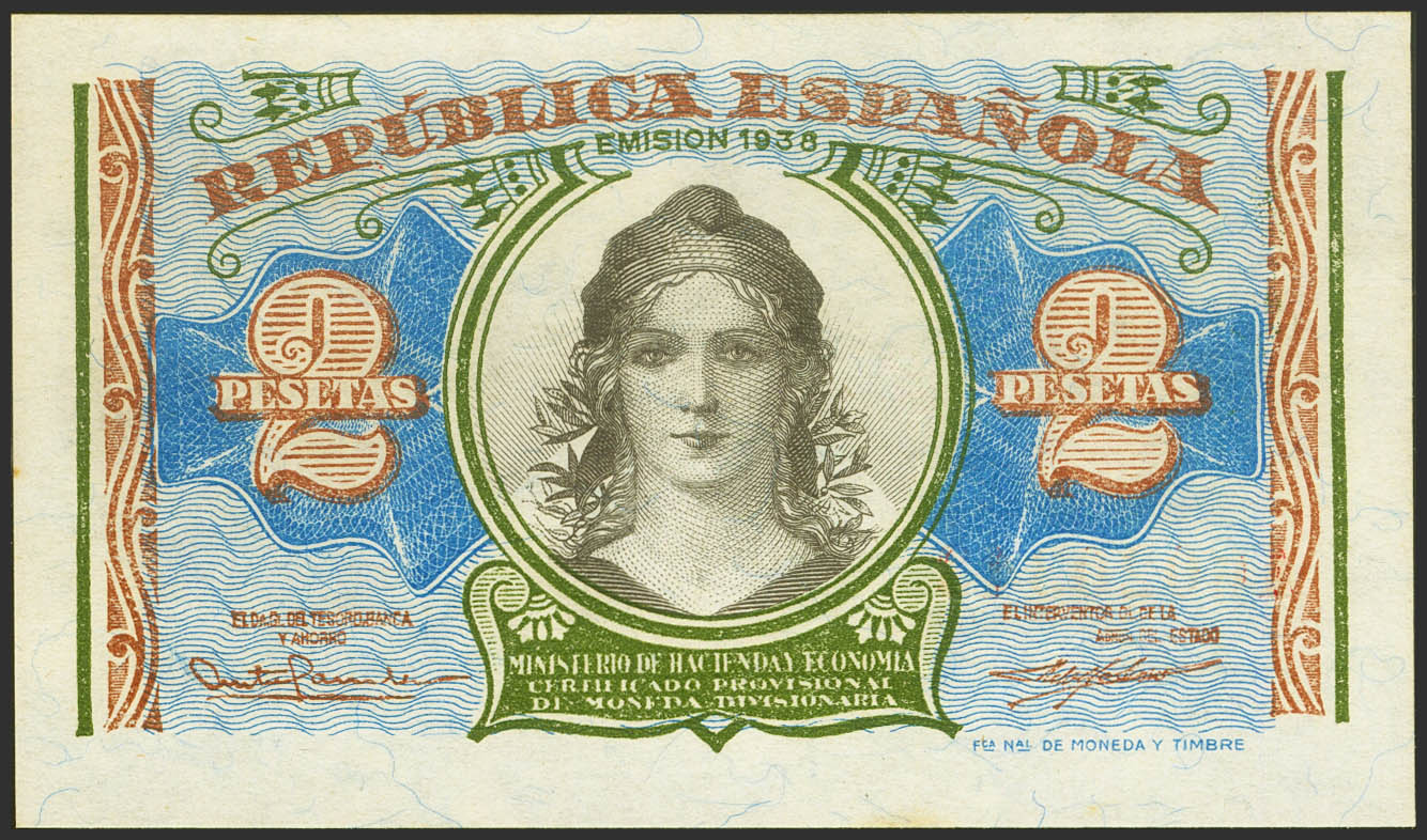 English 2 Pesetas. 1938. Ministry of Finance. Series A. (Edifil 2021: 393). Original sizing. EBC+++.