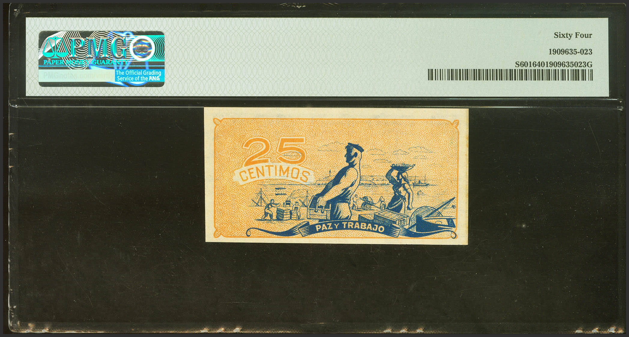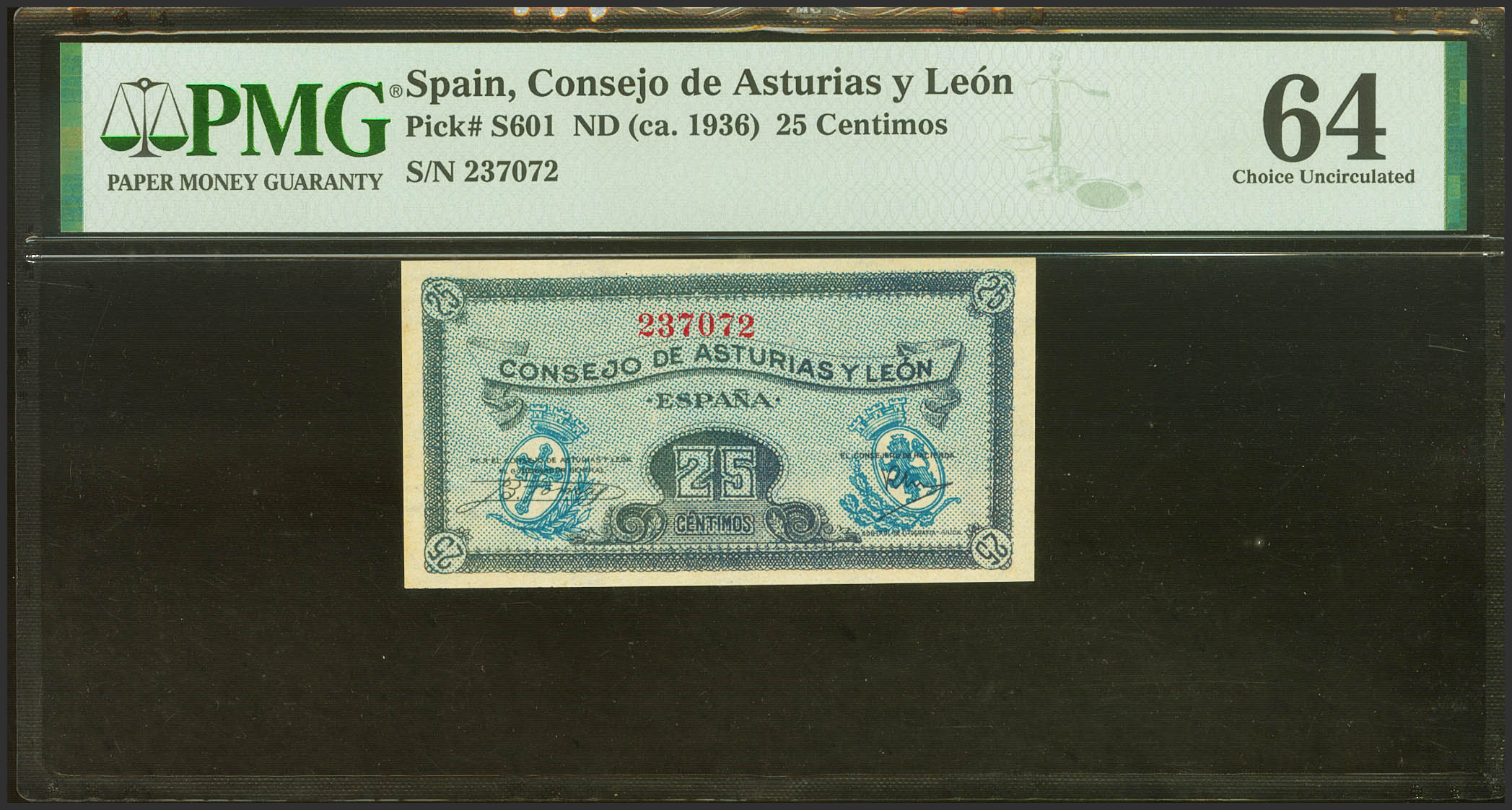 25 Cents. 1937. Asturias and León. No serie. (Edifil 2021: 394, Pick: S601). Uncirculated. PMG64 encapsulation.