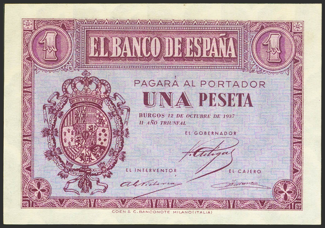 1 Peseta. October 12, 1937. Series C. (Edifil 2021: 425a). It retains all its original finish. Uncirculated.