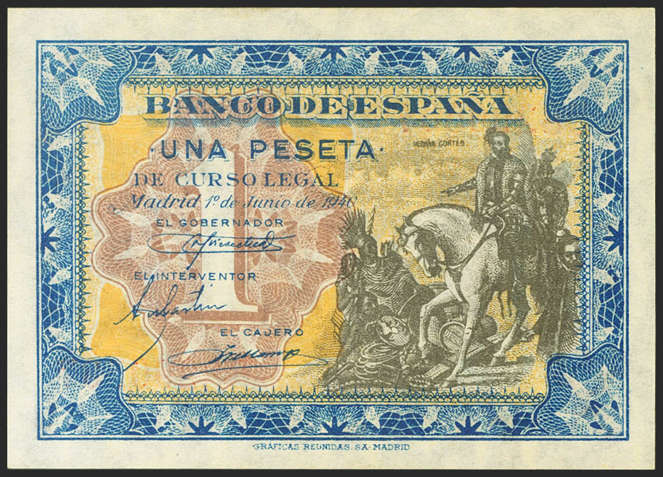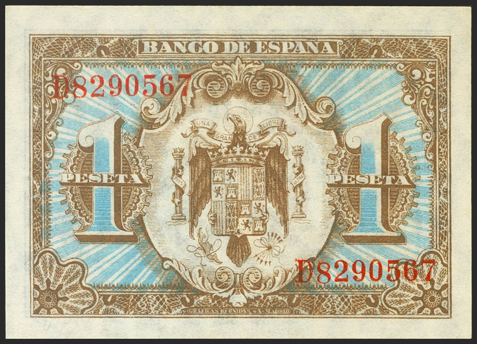 1 Peseta. June 1, 1940. Series D. (Edifil 2021: 441a). Original sizing. Almost Uncirculated.