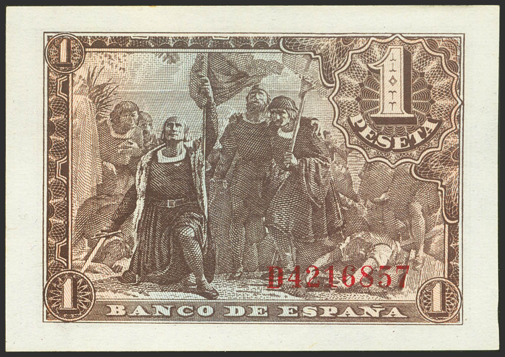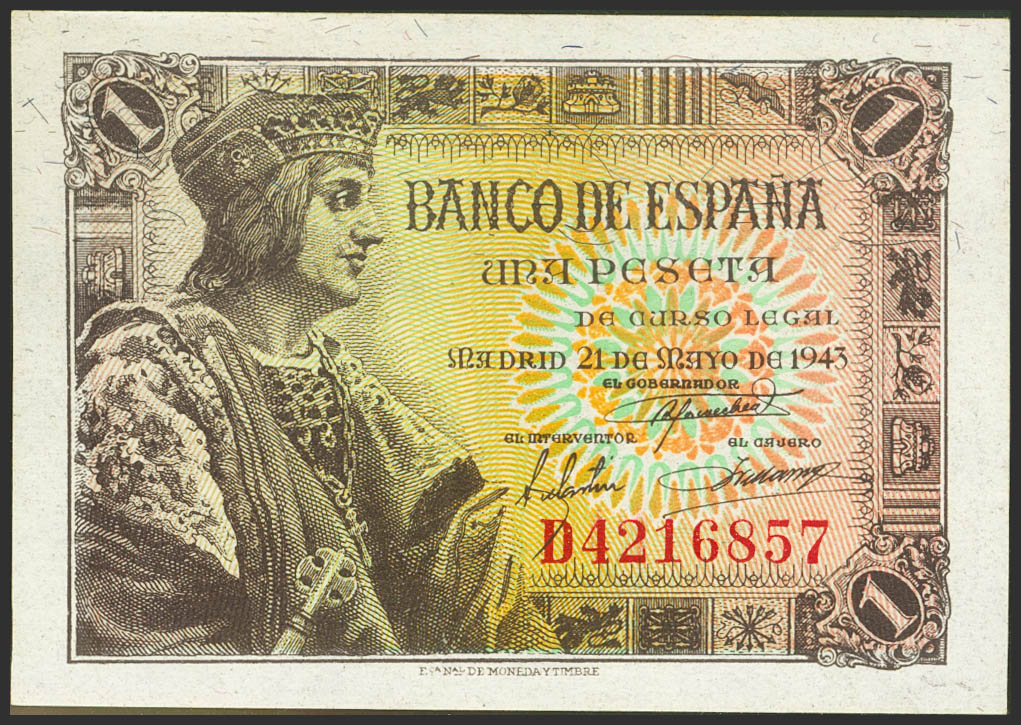 1 Peseta. May 21, 1943. Series D. (Edifil 2021: 447a). Original sizing. Uncirculated.