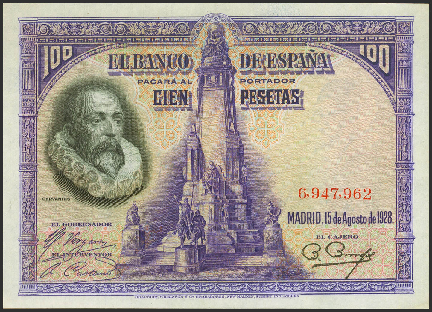 100 Pesetas. August 15, 1928. No series. (Edifil 2023: 355). It retains much of its original finish. EBC++.