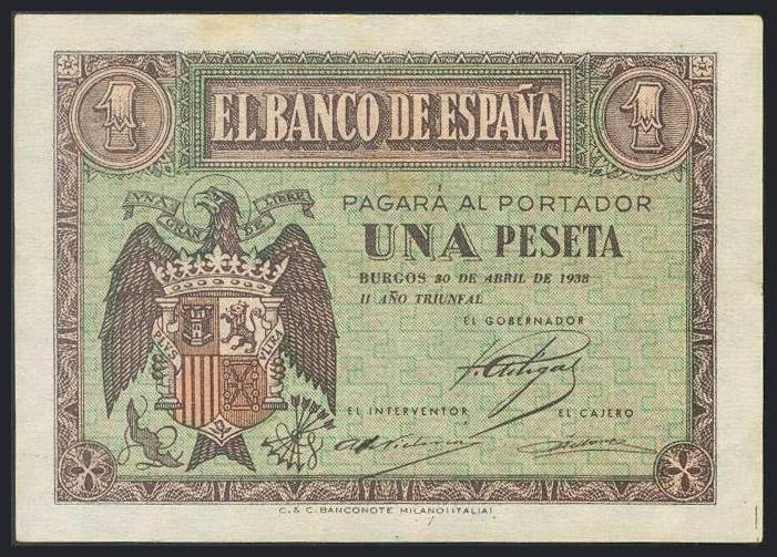 1 Peseta. 30 de Abril de 1938. Sombritas de óxido. Serie F. (Edifil 2017: 428a). EBC.