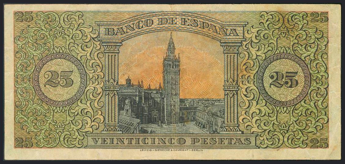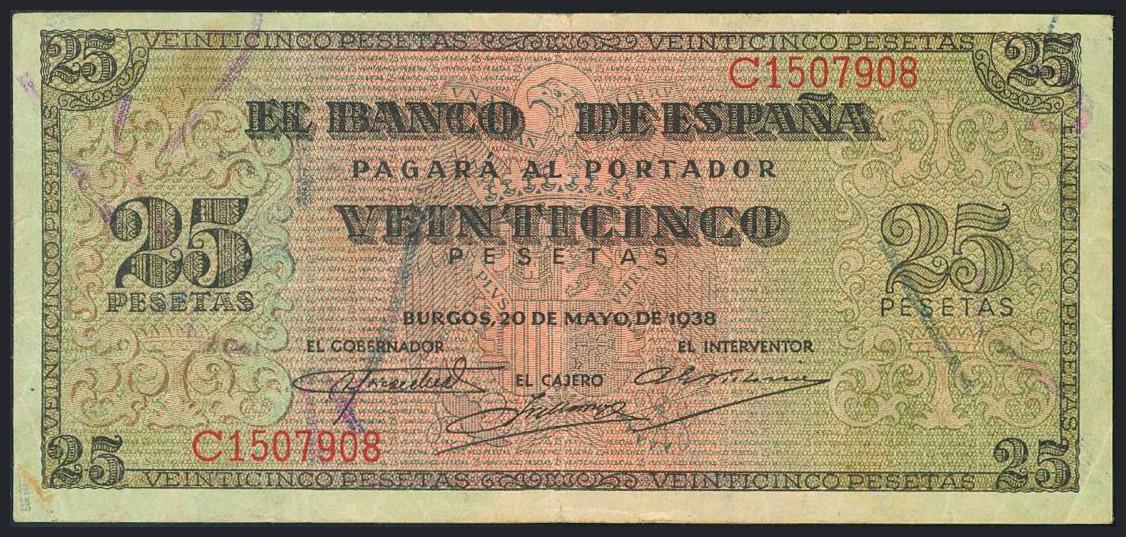 25 Pesetas. 20 de Mayo de 1938. Banco de España, Burgos. Serie C. (Edifil 2017: 430a). MBC.