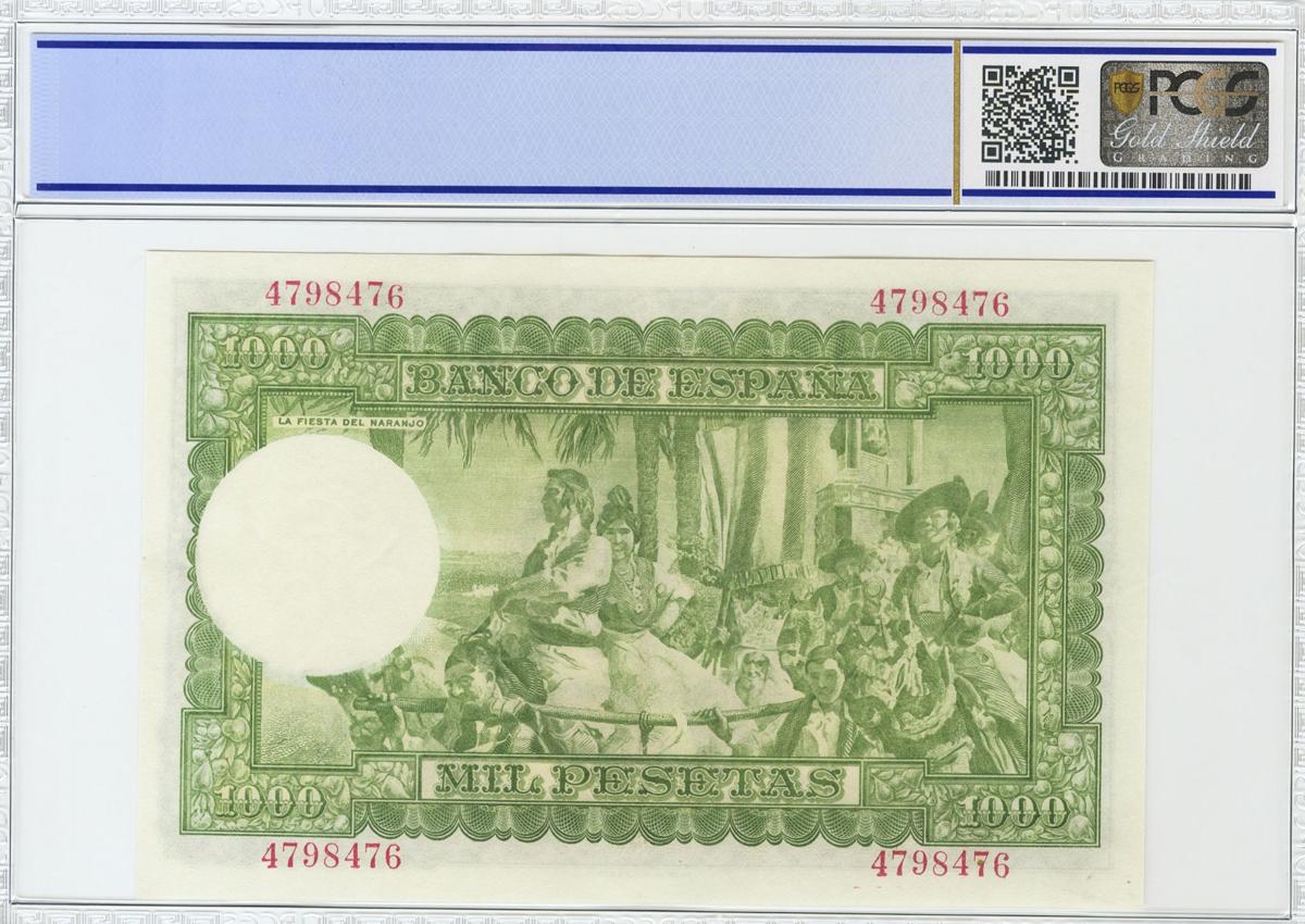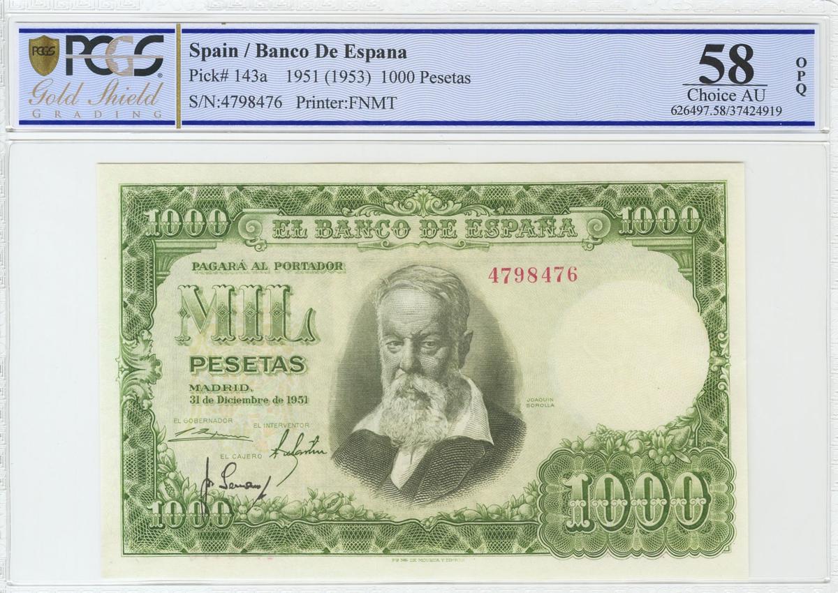 1000 Pesetas. 31 de Diciembre de 1951. Sin serie. (Edifil 2017: 463, Pick: 143a). Apresto orginal. EBC+. Encapsulado PCGS58OPQ.