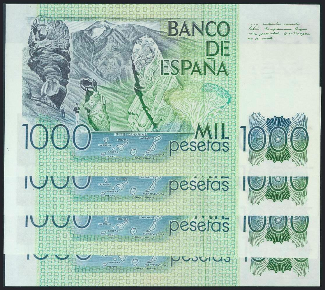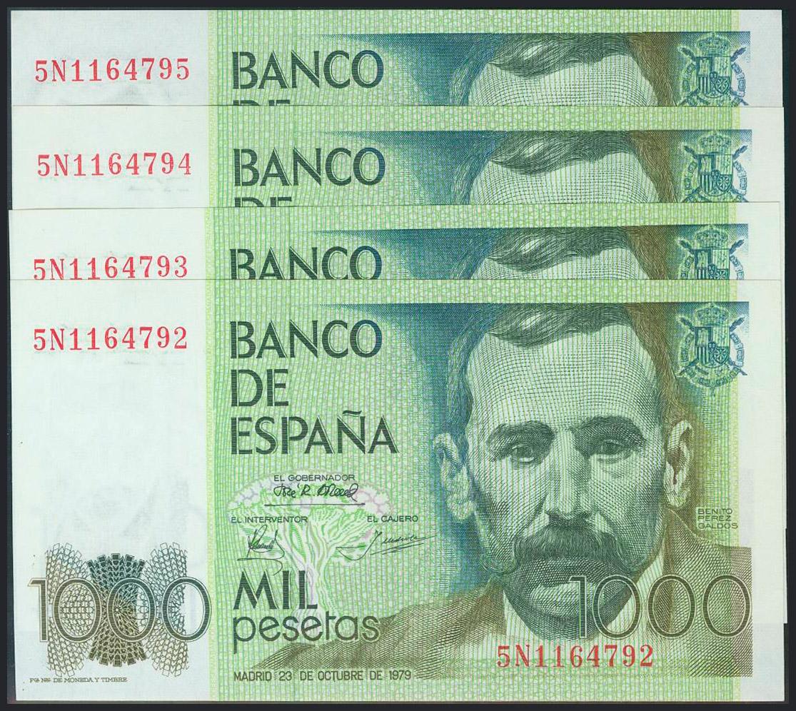 Conjunto de 4 billetes correlativos de 1000 Pesetas, de la emisión del 23 de Octubre de 1979. Serie 5N. (Edifil 2017: 477a). SC.