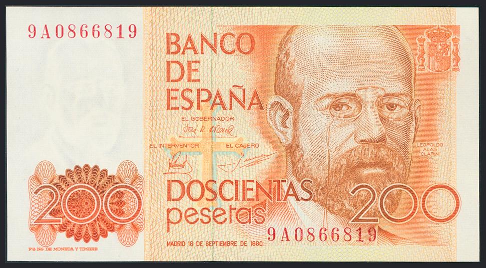200 Pesetas. 16 de Septiembre de 1980. Serie especial 9A. (Edifil 2017: 480b). SC.