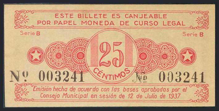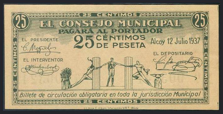 ALCOY (ALICANTE). 25 Céntimos. 12 de Julio de 1937. (González: 378). SC.