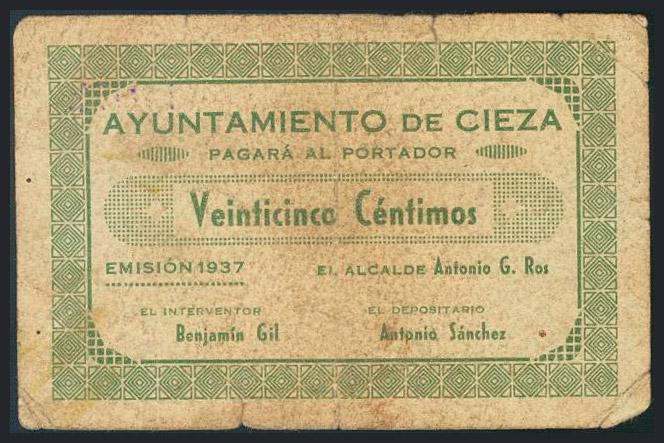 CIEZA (MURCIA). 25 Céntimos. 1937. (González: 1965). BC.