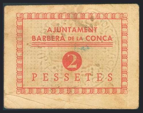 BARBERA DE LA CONCA (TARRAGONA). 2 Pesetas. (1937ca). (González: 6514). BC.