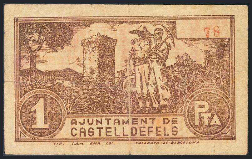 CASTELLDEFELS (BARCELONA). 1 Peseta. 23 de Abril de 1937. (González: 7448). BC.