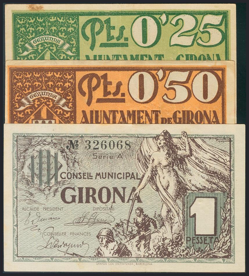 GERONA. Serie completa del 25 Céntimos, 50 Céntimos y 1 Peseta. 1937. (González: 8030/32).