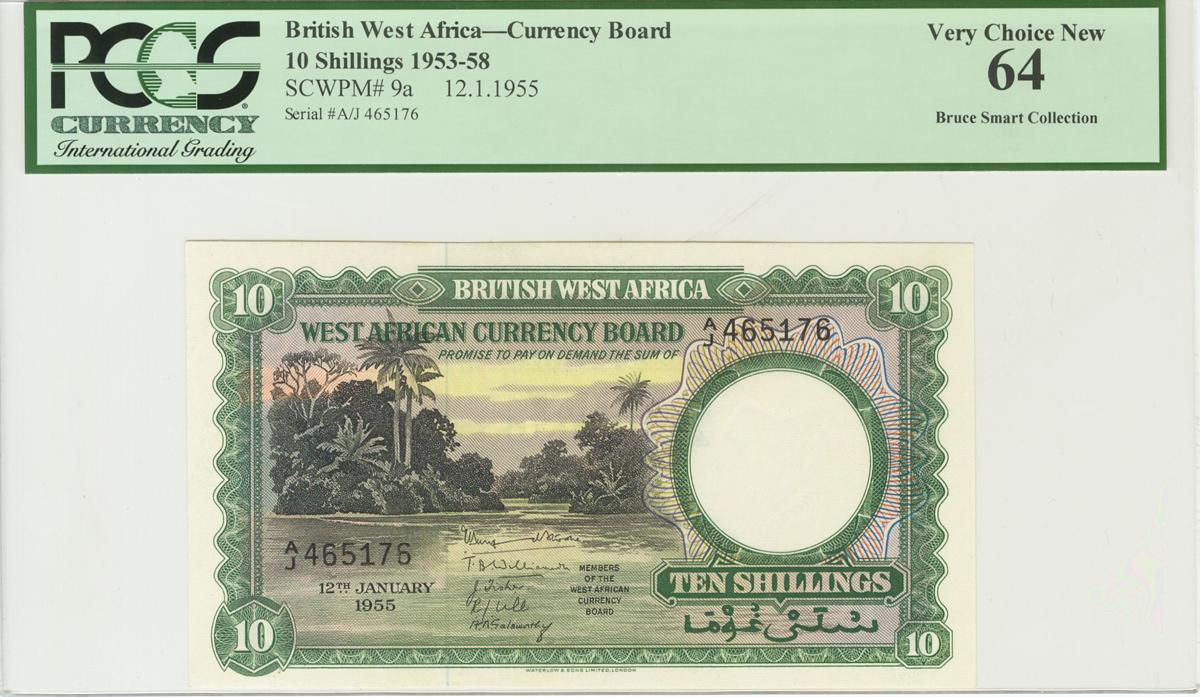AFRICA BRITANICA OCCIDENTAL. 10 Shillings. 12 de Enero de 1955. (Pick: 9a). Raro. Encapsulado PCGS64. SC.