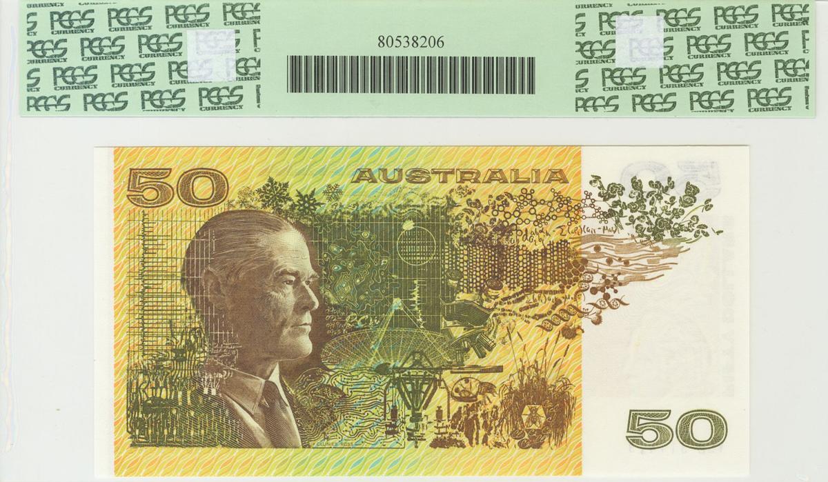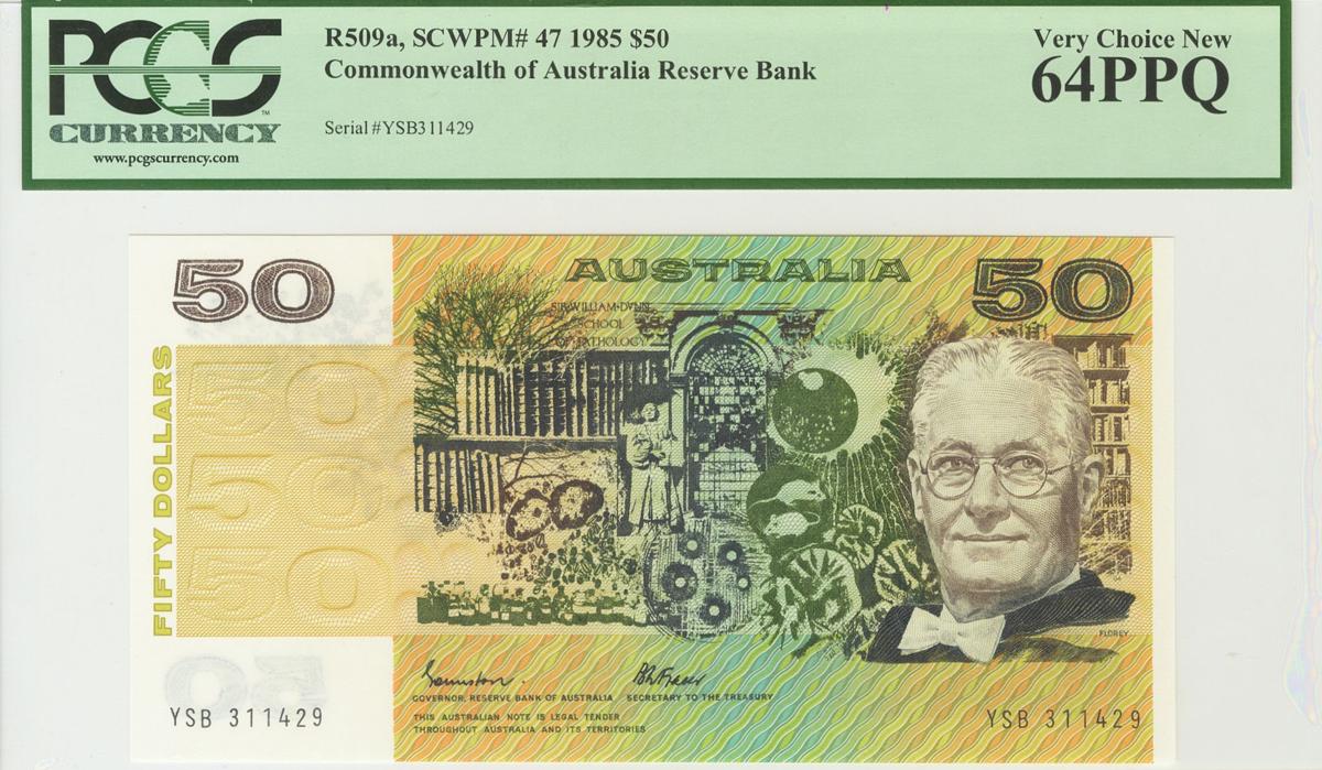 AUSTRALIA. 50 Dólares. 1985. Serie YSB. (Pick: 47). Encapsulado PCGS64PPQ. SC.