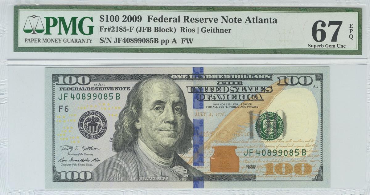 ESTADOS UNIDOS. 100 Dólares. 2009. Federal Reserve Note Atlanta. (Fr.: 2185-F). Encapsulado PMG67EPQ. SC.