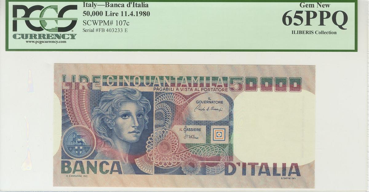 ITALIA. 50000 Liras. 11 de Abril de 1980. (Pick: 107c). Encapsulado PCGS65PPQ. SC.