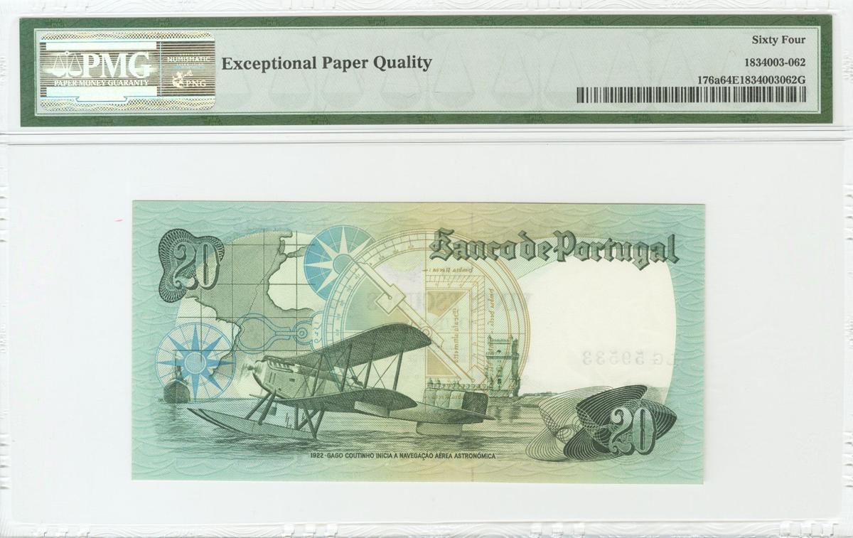 PORTUGAL. 20 Escudos. 13 de Septiembre de 1978. Serie LG. (Pick: 176a). Encapsulado 64EPQ.